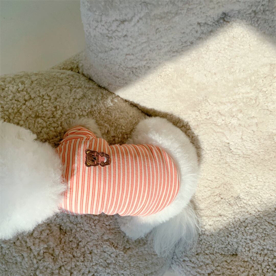 【全3色】クマさんワンポイントのストライプカットソー d1085