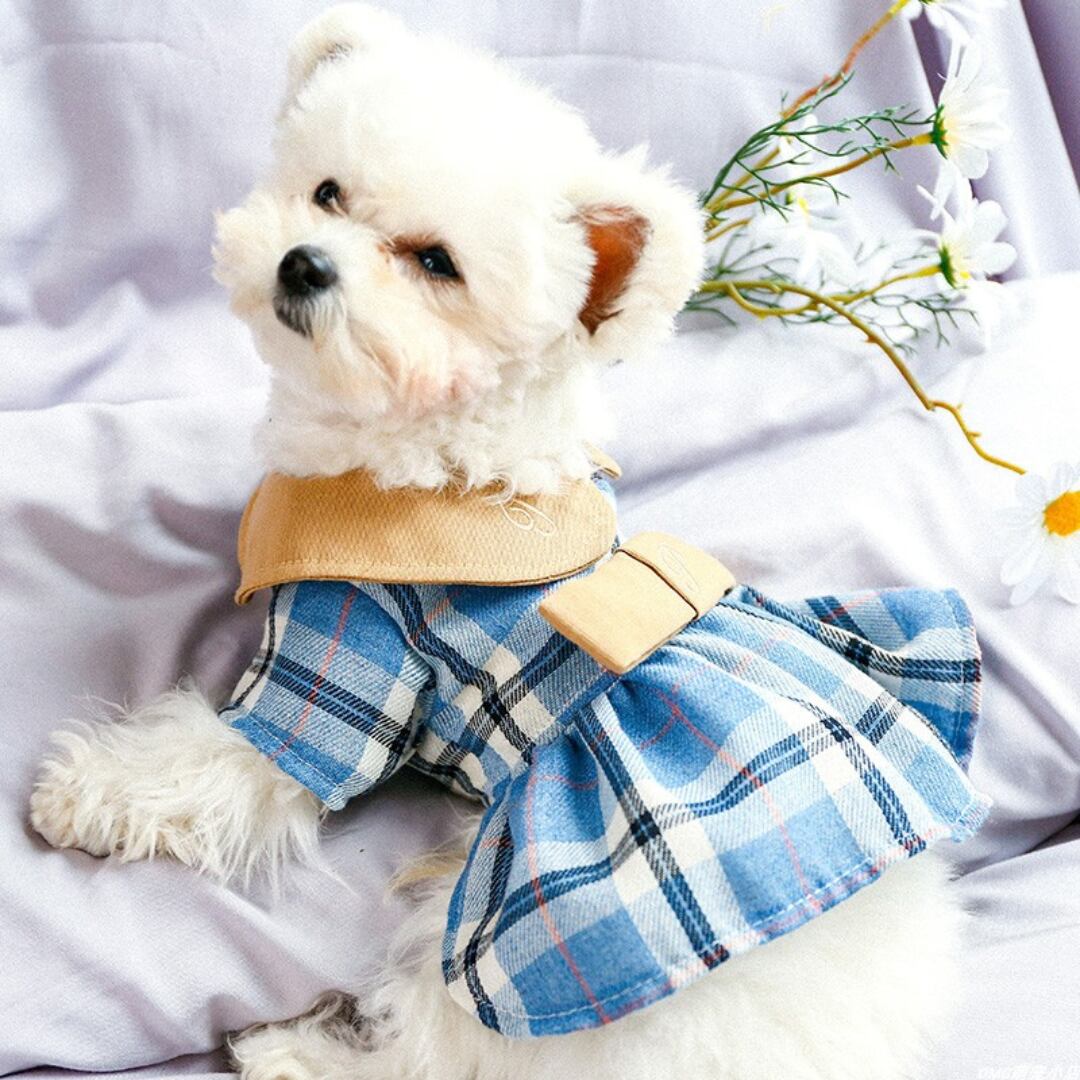 【全2色】襟とベルト付きのチェックワンピース d1315