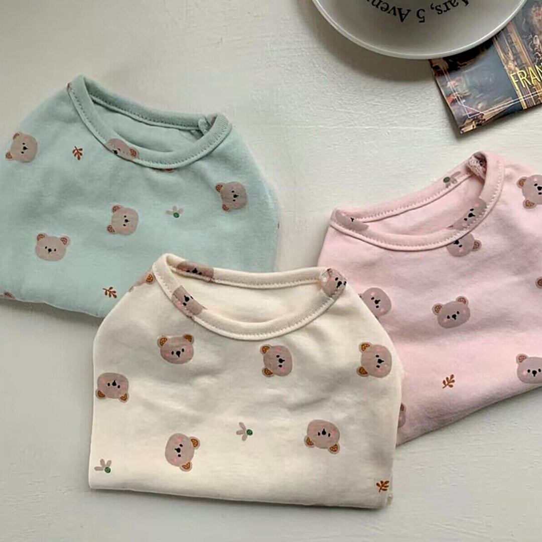 【全3色】クマさんプリントのパステルカラーカットソー d1482